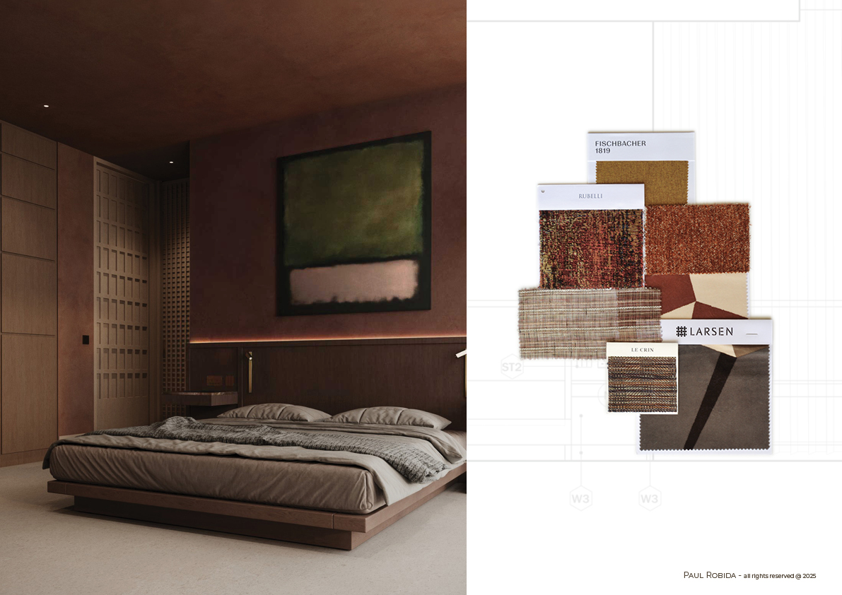Keeping the materials selection to a minimal; a warm palette of limestones, mid-tone woods, rusted accents and, for the heartbeat of the place, a light green quartzite stone, complemented by furnitures from Bruno Moinard and Christophe Delcourt, upholstered in warm textured fabrics from Rubelli, Metaphores, Le crin, Fischbacher and Larsen, to name just a few…